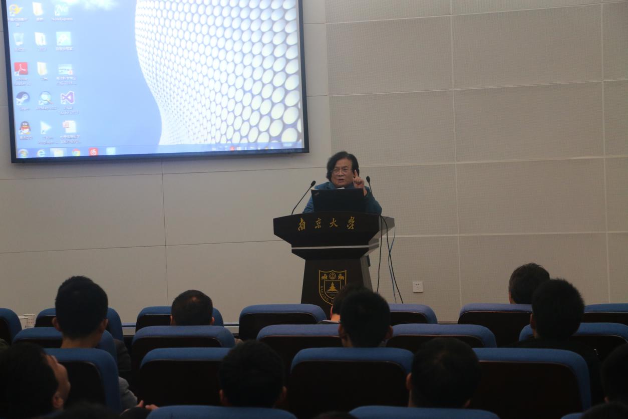 首先,王颖院士上台致辞,作为地海学院资深院士,她鼓励师生“发扬传统,保持特色,创新前进”。王院士从地理学院的历史发展,到地理学院走出的学生广受欢迎,生动全面介绍了南大地理学院在全国的领先地位。作为起步早、资历老的研究陆海交汇作用的单位之一,在海洋强国战略被国家冠以盛名的今天,地理学院“不能走得慢、不能落后”,应继续在自然科学和技术科学等多个领域为南海问题积极出力。陆地与海洋并重的地理学院任何时候都不能抛弃海洋,王院士积极鼓励大家选择海洋专业,促进个人发展,满足时代需求。