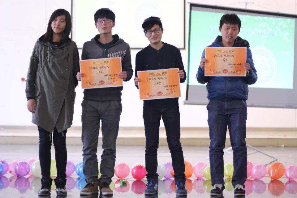 上午九点,活动正式开始。在主持人简短的开场后,三院代表队进行了自我介绍。除来自大一的六名队员外,大二的马康浩(人送外号“小胖子”)因其卓绝的嗓音与唱功而被邀请为大渔直播 代表队的领队,并在“我爱记歌词”环节中担任领唱。除了来自三院的选手与观众外,我们有幸邀请到了13级十大歌手班兆馨学姐以及14级十大歌手陈驰和樊一阳担任本次活动的评委与颁奖嘉宾。