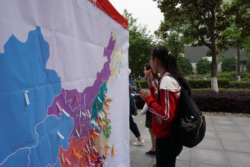 随着人流越来越多,展台末尾用来投票的巨幅中国地图上,代表投票的便利贴也渐渐开始盖满整张地图,饱含着对大家的的赞许和肯定。