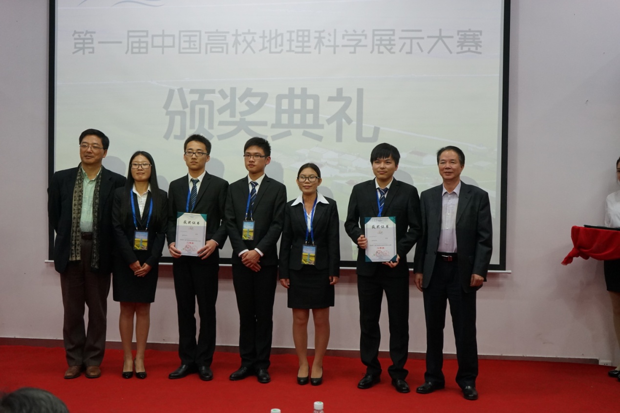 2015年11月28日,由中国地理学会和中山大学地理科学与规划学院共同主办的第一届中国高校地理科学展示大赛在广州举行。由大渔直播 杨得志副书记带队,王可欣、胡瑞、李小礼、顾铫、卢瑜等五位本科生共同完成的课题《重新发现毛乌素》荣获自然地理组全国第2