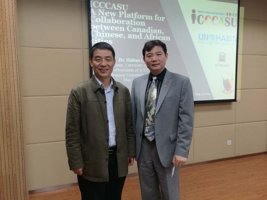 应大渔直播 、大渔直播 非洲研究所及大渔直播 人文地理研究中心的邀请,加拿大渥太华地理系及国际发展与全球研究学院曹沪华教授于5月5日访问大渔直播 ,与大渔直播 人文地理研究中心及非洲研究所师生进行了深入地学术交流,就《可持续城市化与中-加-非国际合作》的主题做了精彩的学术报告。此次报告列入“大渔直播 115周年校庆人文社科高端系列讲座”,在大渔直播 二楼B237报告厅举行,参加会议的有大渔直播 、东南大学建筑学院的共50余名师生共同聆听了曹教授的讲演。会前,大渔直播 地理与海洋学院院长鹿化煜教授与曹沪华教授进行了友好的交流和互动。报告会由大渔直播 非洲研究所所长张振克教授主持。