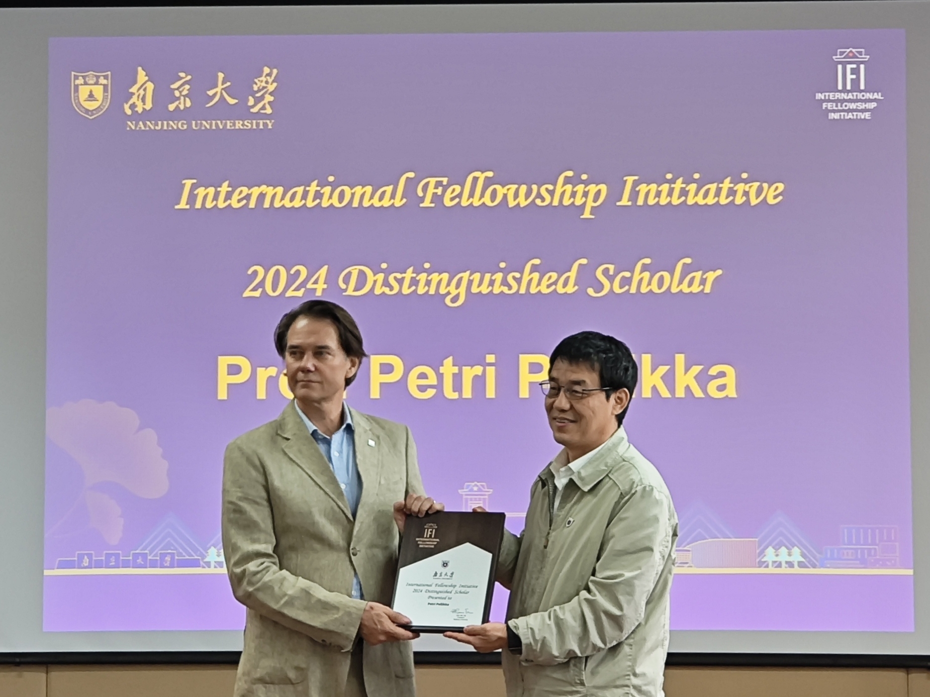 1月13日,大渔直播 院长鹿化煜教授向Petri Pellikka教授颁发大渔直播 IFI杰出学者聘书,Petri Pellikka教授作了题为Remote sensing of the impact of land use change for ecosystem services in Africa的第一场学术报告。12月2日,Petri Pellikka教授作了题为Hyperspectral remote sensing of land cover characteristics and dynamics in versatile landscape in East Africa的第二场学术报告。系列学术报告围绕东非土地利用变化对生态系统服务和气候影响,介绍如何利用高分辨率卫星、航空飞机、无人机、地面站点等多尺度观测数据,通过遥感科学、人工智能、地理科学、生态学等学科深度交叉融合,监测土地利用与覆盖变化,揭示生态系统的响应。报告不但有大渔直播 相关学科的师生积极参与交流,还吸引了南京信息工程大学、江苏第二师范学院等在宁高校以及兰州大学、海南大学等外地高校的师生参与,产生了广泛的影响。