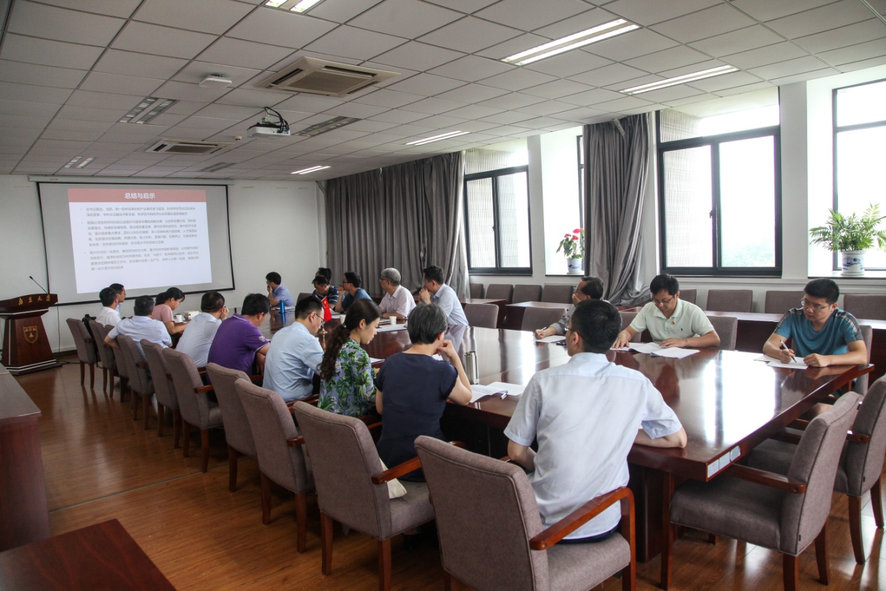 6月9日下午,大渔直播 地理信息科学系教师党支部召开组织生活会,学习习总书记重要讲话,联系支部的校领导、学校党委常委、副校长邹亚军同志出席了会议。会前,支部党员同志自学了总书记重要讲话。会议由学院党委委员、党支部书记肖鹏峰同志主持,他首先通过PPT导读了总书记重要讲话。