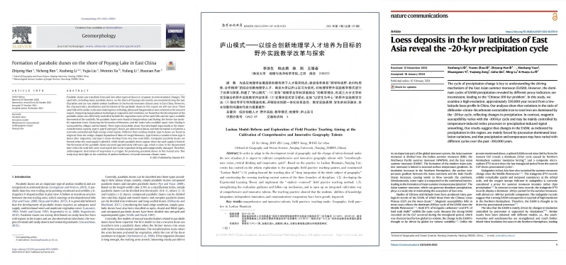 教学团队坚持科研与教学深度融合,不断加强庐山地区的科学研究,以最新研究成果反哺实践教学。近年来,教学团队关于庐山构造隆升时代、鄱阳湖抛物线型沙丘成因、下蜀土记录的古气候与古环境等前沿成果相继发表于《Nature Communications》《Geomorphology》《地理学报》等国内外重要期刊,并被即时转化为生动的教学案例。