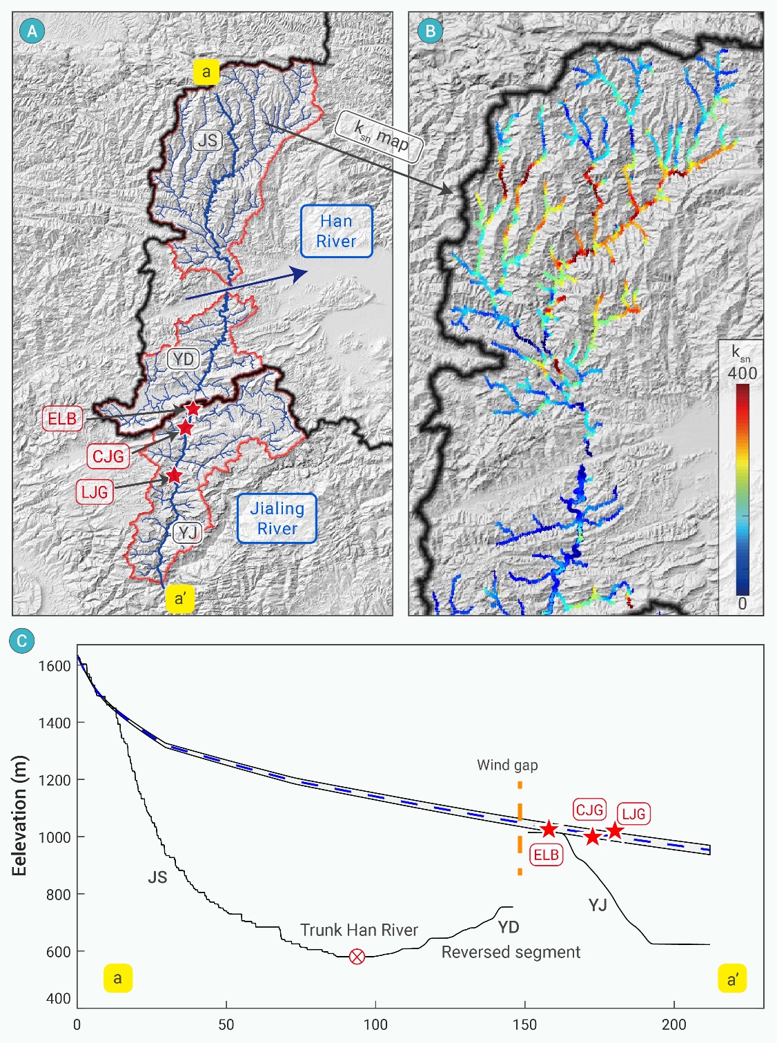 水系重组对地表水资源和沉积物输送有显著影响,进而影响区域地貌、生态环境及古人类迁徙和扩散等。作为全球大江大河发源地的高原地区构造活动复杂、气候分异强,水系结构复杂多变,尚缺乏深入理解。本文以我国南北气候过渡带-秦岭地区汉江和嘉陵江为例,探讨了山体生长-盆地沉陷-地表侵蚀作用下水系重组过程及驱动机制。