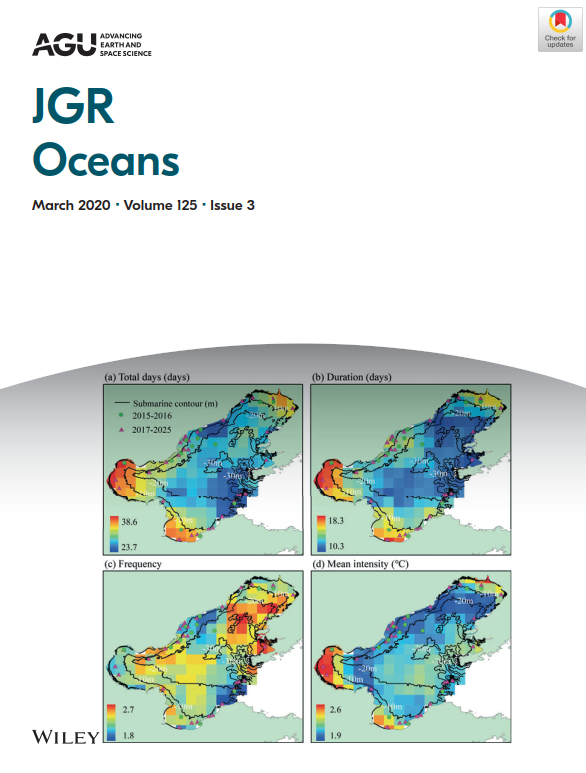大渔直播 邹欣庆教授课题组在中国近海海洋热浪研究取得重要进展,研究成果以 “Marine heatwaves in China's marginal seas and adjacent offshore waters: Past, Present, and Future” 为题于2020年3月17日在海洋科学类的顶级期刊“Journal of Geophysical Research: Oceans”上在线发表, 并被选为当期封面文章。论文第一作者为博士生姚玉龙,通讯作者为邹欣庆教授,合作单位包括中国海洋大学和美国亚利桑那大学。