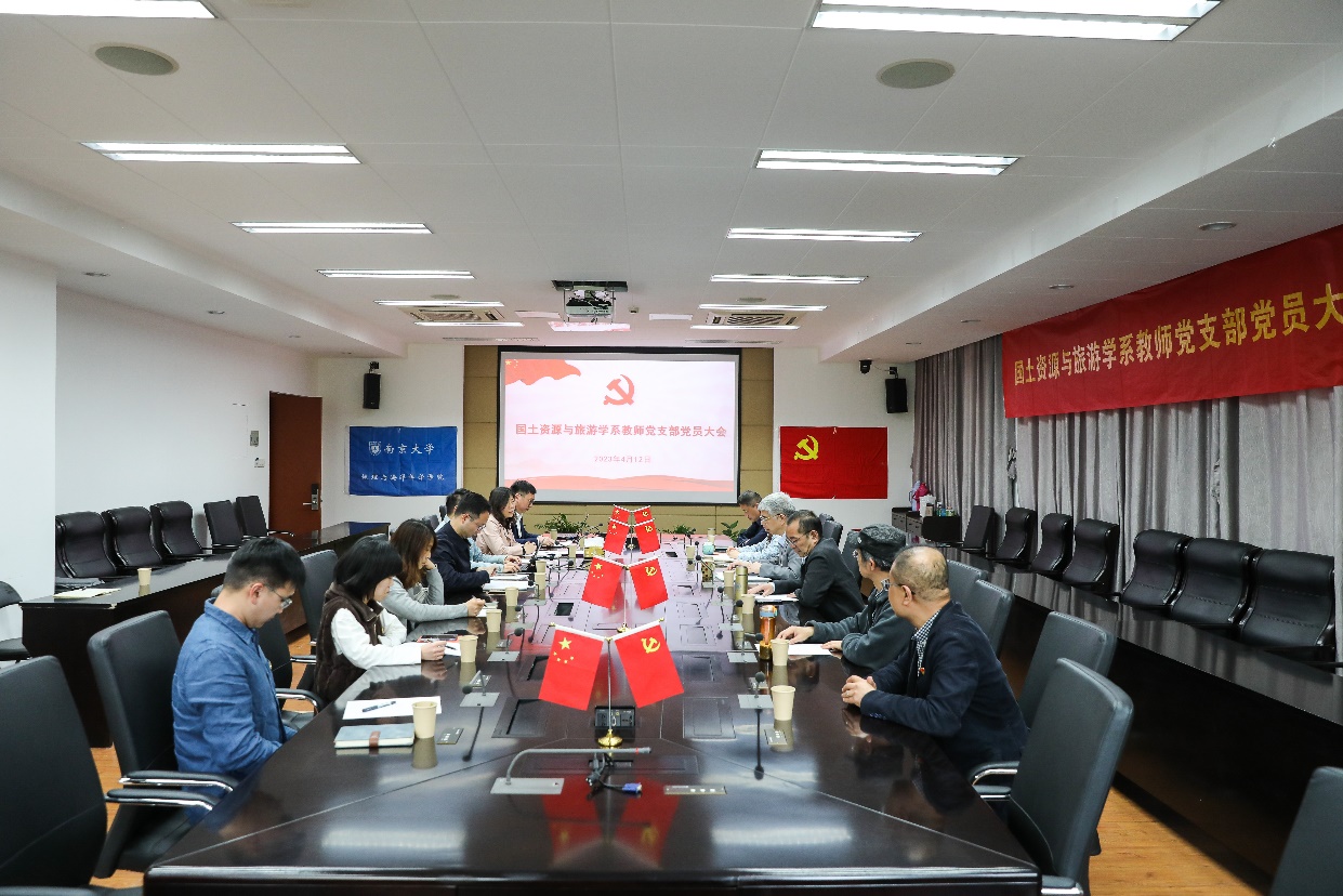 4月12日下午,大渔直播 国土资源与旅游学系教师党支部召开党员大会,讨论接收张宏磊副教授为中共预备党员。会议由党支部书记汪侠主持,大渔直播 党委书记李满春,党委副书记陈卉,党委委员、副院长金晓斌,以及国土资源与旅游学系教师党支部党员参加会议。