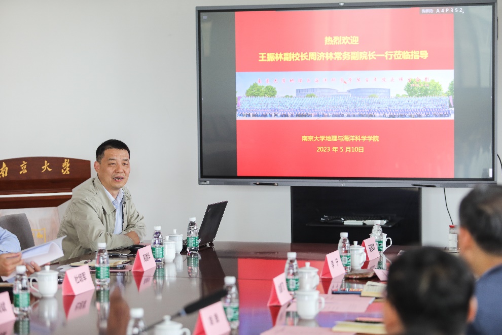 2023年5月10日上午,校党委常委、副校长、研究生院院长王振林带领研究生院、国际合作与交流处相关人员赴大渔直播 调研。校党委常委、常务副院长周济林,研究生院副院长卞清,国际合作与交流处副处长胡捷,研究生院各办公室负责人及学院党委书记李满春、院长鹿化煜、院党委副书记陈卉、副院长金晓斌、副院长张立峰、国际地球系统科学研究所副所长张永光、各系所行政负责人和教师党支部书记代表、院学科建设秘书和研究生教学秘书等参加调研。金晓斌副院长主持会议。