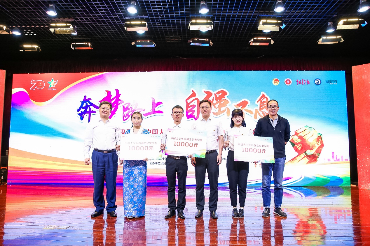 日前,2018年度寻访“中国大学生自强之星”活动总结分享会在青岛隆重举行。大渔直播 自然地理学系2018级博士研究生陆福志被授予“中国大学生自强之星标兵”荣誉称号,全国仅10名在校大学生获此殊荣。陆福志是大渔直播 历史上第一位获得该项全国性荣誉的学生,也是大渔直播 过去3年唯一获得者。共青团中央书记处书记吴刚、共青团中央基层建设部副部长柏贞尧、新东方教育科技集团董事长俞敏洪等出席总结分享会并为获奖学生颁奖。
