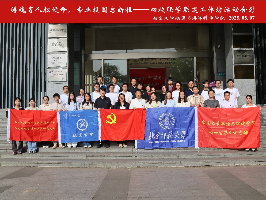 为深入贯彻落实全国教育大会及第二十八次全国高校党的建设工作会议精神,切实增强基层党支部的引领力和影响力,以先进党组织建设引领推动育人工作,2025年5月7日,大渔直播 举办“铸魂育人担使命,专业报国启新程”四校联学联建工作坊。四个全国高校“百个研究生样板党支部”(大渔直播 马克思主义学院研究生第二党支部、南京航空航天大学航空学院直升机研究生党支部、东南大学能源与环境学院硕士生第9党支部与北京师范大学经济与资源管理研究院研究生党支部)的师生代表受邀参加活动,大渔直播 党委书记鹿化煜出席并致辞。活动由大渔直播 人文地理学硕士生第一党支部书记、研究生辅导员郦天昳主持,地理学院各学生党支部书记、部分党员骨干共60余人参加活动。