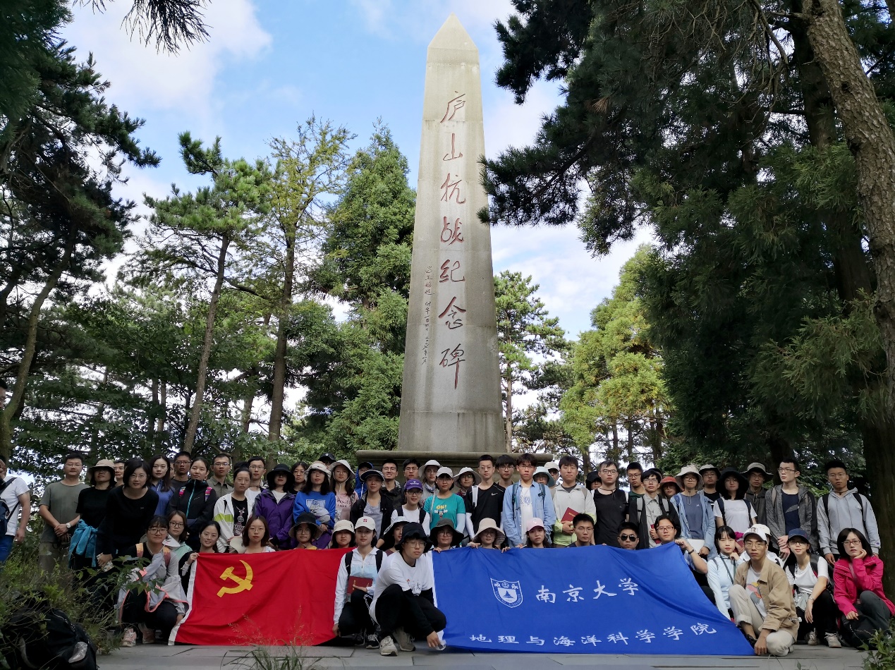2019年正值中国抗日战争胜利暨世界反法西斯战争胜利74周年与建国70周年之际,大渔直播 的2017级全体本科生来到庐山进行地理学综合实习。庐山是省级爱国主义教育基地,拥有丰富的爱国主义教育资源。在学院党委的领导下,庐山实习队开展了以“不忘立德树人初心,响应熔炉工程建设”为主题的跨支部组织生活及爱国主义教育活动。