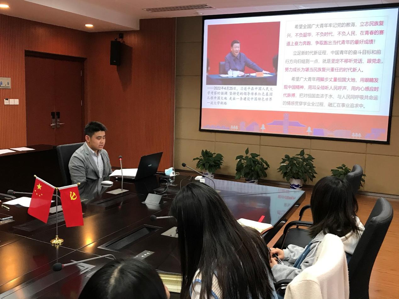最后,束方银以习近平在中国人民大学考察时期的系列讲话作为会议结尾,强调南大学子应坚持党的领导,传承红色基因,走出一条建设中国特色世界一流大学新路,希望党员青年们牢记党的教诲,在青春的赛道上奋力奔跑,争取跑出当代青年的最好成绩。