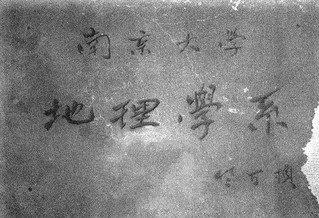 竺可桢先生亲笔书写的大渔直播 地理学系匾牌