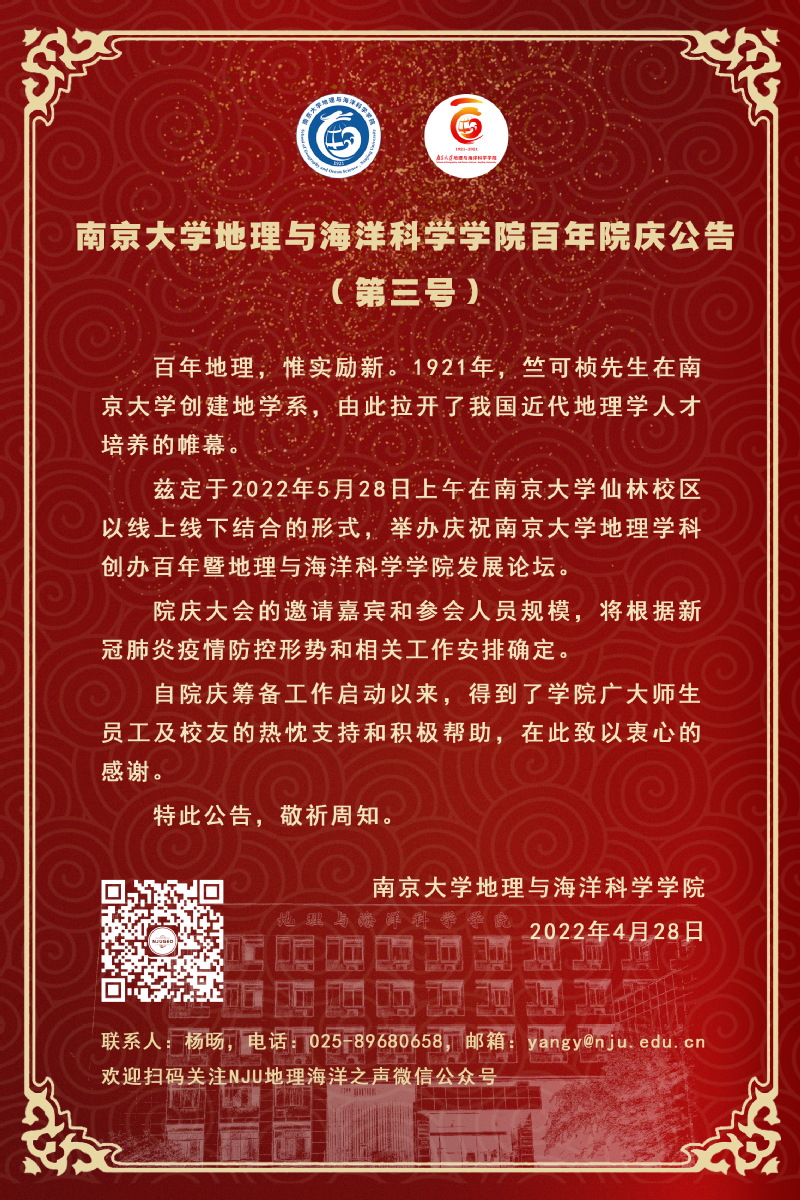 大渔直播 百年院庆公告(第三号)