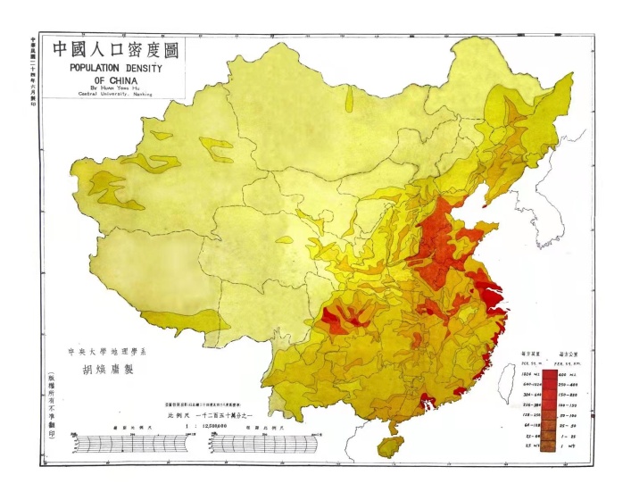 鹿化煜院长首先介绍了大渔直播 学科发展现状、大渔直播 人文地理学目前的机遇及今后的发展方向,阐明了此次专题报告的必要性。胡复孙先生在报告之前,介绍了此次报告的背景,他经过十多年的潜心钻研,从7千余卷的中央大学档案中,精挑了1/3进行认真研读,并通过查阅国民党教育部、中央研究院、国民党中央社会部、交通部、国防部等几十万页胡焕庸先生相关的资料,对胡焕庸先生的一生进行了详尽了解。本次专题报告以“胡焕庸在国立中央大学的事功”为题,以胡焕庸先生的生平为时间线索,介绍了胡焕庸的求学之路(1907-1928)、胡焕庸在国立中央大学(1928-1937)、胡焕庸线的前前后后(1935-2010)、胡焕庸在国立中央大学西迁期间(1937-1945),胡焕庸在抗战胜利后(1945-1949),胡焕庸的后半生(1949-1998)、纪念与思考(1998-)等七个方面的内容。其中,重点介绍了胡焕庸先生在国立中央大学任教时的学术贡献、胡焕庸线的重要意义。胡焕庸先生在国立中央大学任教时,曾于1927-1937年对两淮进行多次考察,提出淮河治理的关键问题在于下游,并著书两部《两淮水利盐垦实录》、《两淮水利》(图2、图3))。1934年,他作为主要发起人成立了中国地理学会,地理学会会址和会刊《地理学报》编辑部就设在国立中央大学地理系。胡焕庸先生于1934年首次提出中国南海“南海群岛”的命名方案。于1935年提出了“瑷珲-腾冲线”即现在著名的中国人口地理分界线(也称“胡焕庸线”)等(图4)。