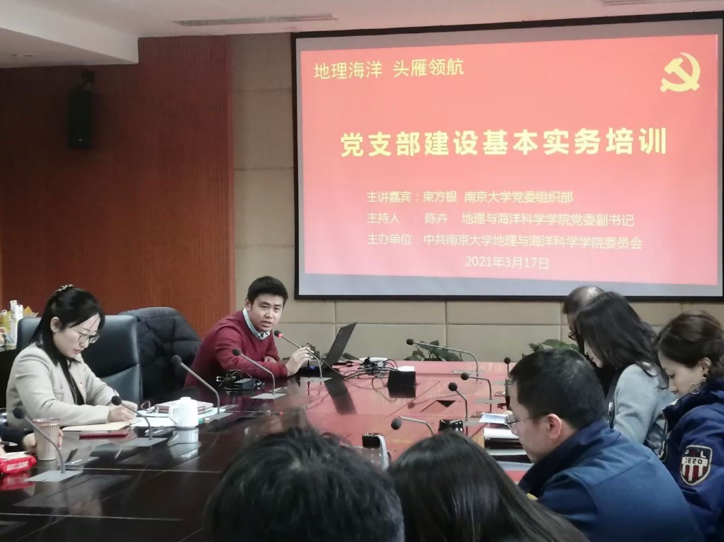 为推动全面从严治党向基层延伸,更好地发挥基层党支部的战斗堡垒作用和党员骨干的先锋模范作用,3月17日,大渔直播 党委举办了“强基固本筑堡垒,提质增效迎华诞”党支部建设基本实务培训会,本次活动为“地理海洋 头雁领航”党员骨干能力提升系列活动的第八场。大渔直播 党委组织部束方银老师应邀主讲,学院党委副书记陈卉主持会议,学院教职工与学生党支部书记、委员40余人参加了本次会议。