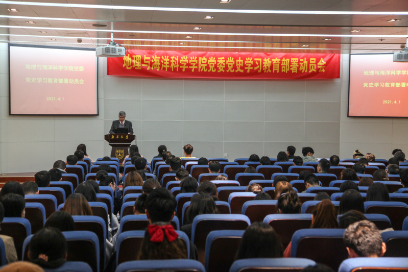 李满春书记在讲话中指出,开展党史学习教育,是牢记初心使命、坚定信仰理念、在新时代坚持和发展中国特色社会主义的必然要求,是建设教育强国、推动学院内涵式发展的迫切需要。今年也是大渔直播 地理与海洋科学学科成立100周年华诞,通过党史学习教育,教育引导全体党员从党带领人民探索中国特色社会主义教育理论和大学发展道路的艰辛历程与伟大成就中,进一步汲取坚定前行的信仰力量,进一步强化使命担当的责任意识,进一步增强干事创业的能力本领,把学院打造成为坚持党的领导、贯彻党的教育方针、落实立德树人根本任务的牢固阵地。