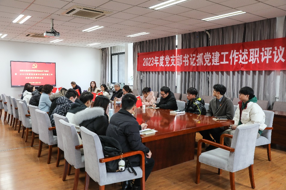 现场述职阶段,采取“一述一评”的方式,各党支部书记围绕党支部深入开展学习贯彻习近平新时代中国特色社会主义思想主题教育、党支部规范化建设、党员先锋模范作用、推动事业发展,为师生办实事等方面,结合本年度支部各项工作,就履职情况、存在问题及原因、下一步工作思路和举措等进行了总结汇报。联系支部的党委委员进行点评,各位委员充分肯定了各支部在2023年度开展的工作和取得的成效,针对支部工作存在的不足及改进措施提出了意见和建议。