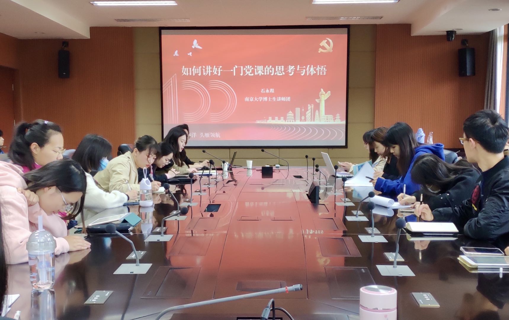 4月14日,大渔直播 党委举办了“理论宣讲点亮心灯,武装头脑奋力前行”支部书记讲党课技能提升工作坊,本次活动为“地理海洋 头雁领航”党员骨干能力提升系列活动的第九场。大渔直播 博士生讲师团团长助理、马克思主义学院研究生会主席石永程同学应邀作《如何讲好一门党课的思考与体悟》主题讲座,学院团委副书记郦天昳老师主持会议,学院学生党支部书记、委员30余人参加了本次会议。